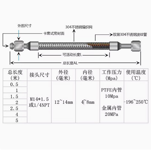 ■304不锈钢编织网提高了软管的承压能力。